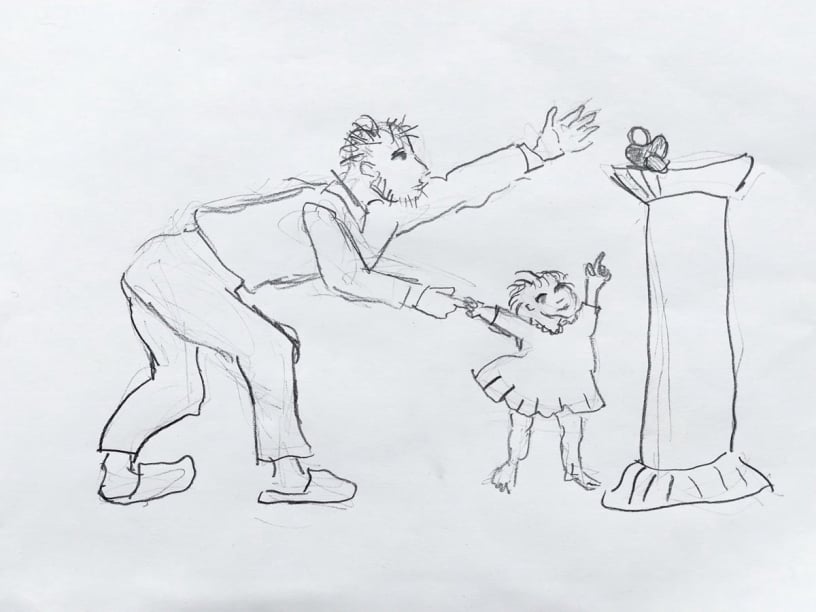 Neulich hat man unser Enkelkindchen entführt. Ein großes Auto fuhr heran, dann öffnete sich die Tür und es wurde mitgenommen von ...